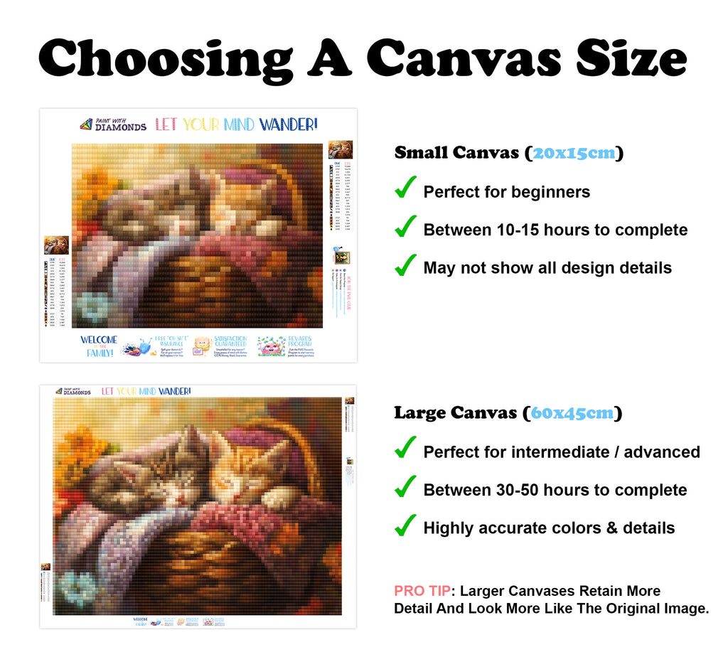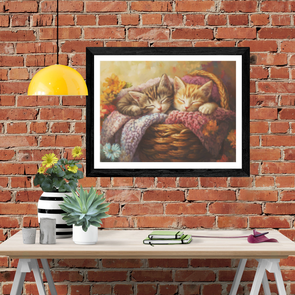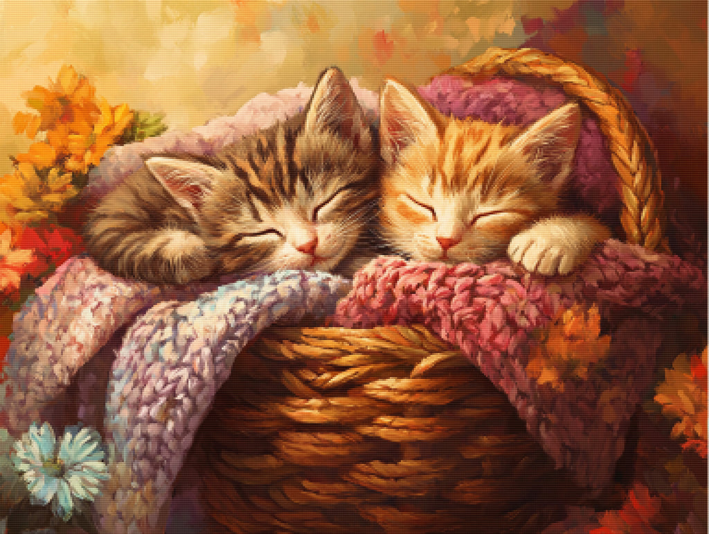 Ready to relax and create something beautiful? Add the Sleepy Kittens in a Basket Diamond Painting Kit to your cart today and start your journey to creative calm.
