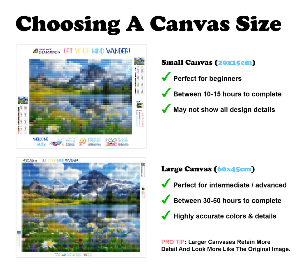 Escape into a world of vibrant colors and creative tranquility with the ‘Mountain Landscape In Spring’ Diamond Painting Kit. This exclusive full-drill design by artist Caleb Smith is available only at Paint With Diamonds. Let your mind unwind as you piece together shimmering diamonds to create a beautiful masterpiece.
