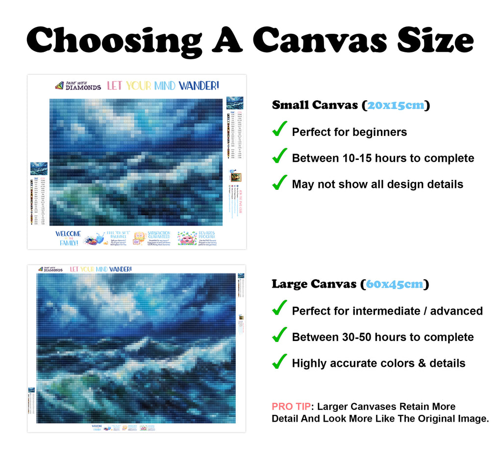 Escape into a world of vibrant colors and creative tranquility with the ‘Stormy Seascape’ Diamond Painting Kit. This exclusive full-drill design by artist Caleb Smith is available only at Paint With Diamonds. Let your mind unwind as you piece together shimmering diamonds to create a beautiful masterpiece.