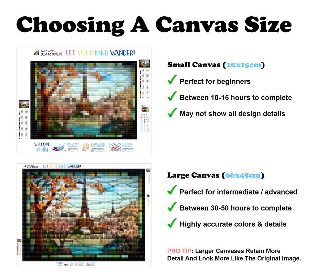 Premium Quality Diamond Painting Kit: Includes a velvety-soft adhesive canvas, eco-friendly shimmering resin diamonds, and a premium toolkit - everything you ned to get started on your next masterpiece.