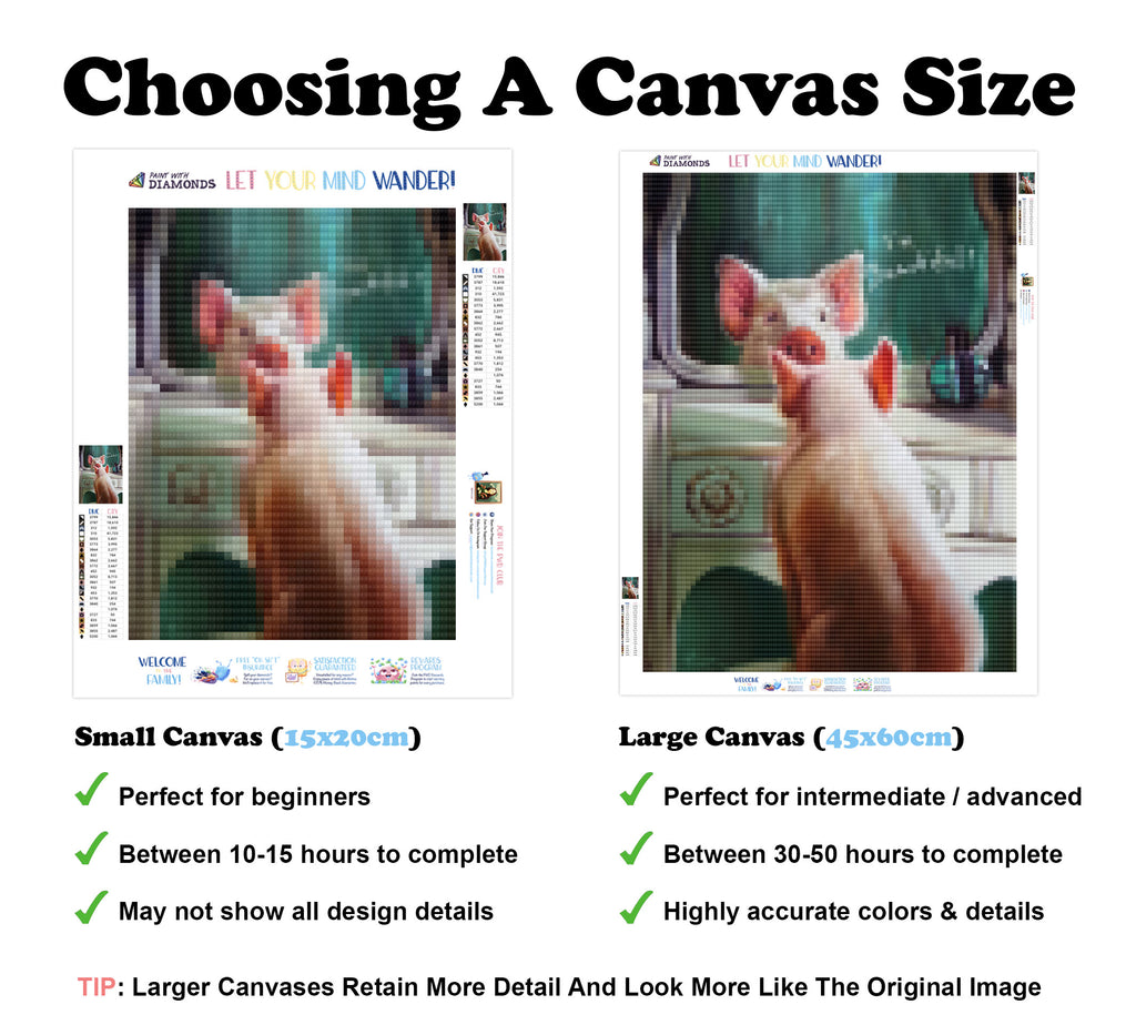 Large canvases show tiny details and all lettering, but may take up to 50+ hours to complete.