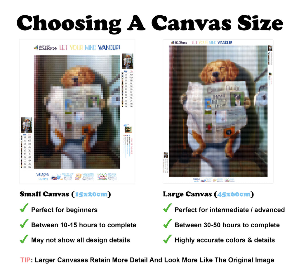 Large canvases show tiny details and all lettering, but may take up to 50+ hours to complete.