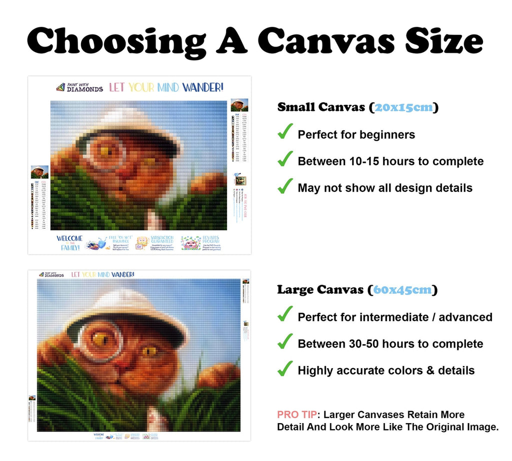 Large canvases show tiny details and all lettering, but may take up to 50+ hours to complete.