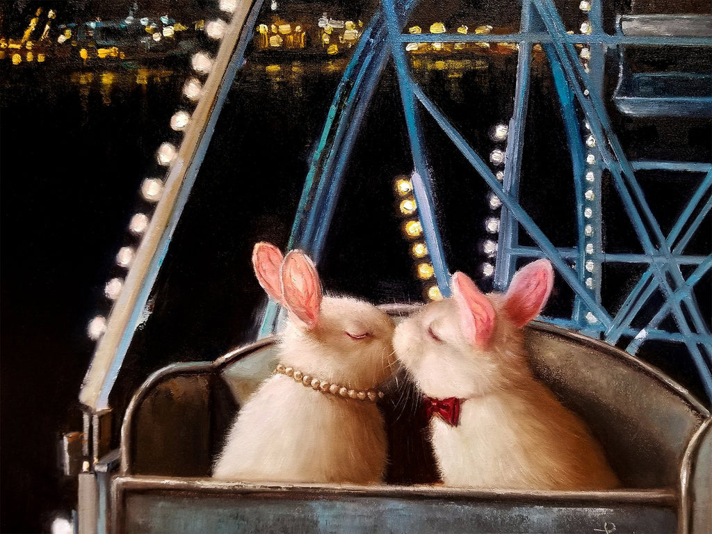 "My body of work is an expression & exploration of my fascination with animals. Through my paintings, I seek to give animals a voice and a personality, while making light of our uniquely human existence. By imagining what animals might do if put in human situations, I stage tableaus that shine a spotlight on both their innocence and raw instinct. This collision between animal and human sensibilities creates a whimsical, theatrical, and often humorous world that viewers can relate to on an emotional level."