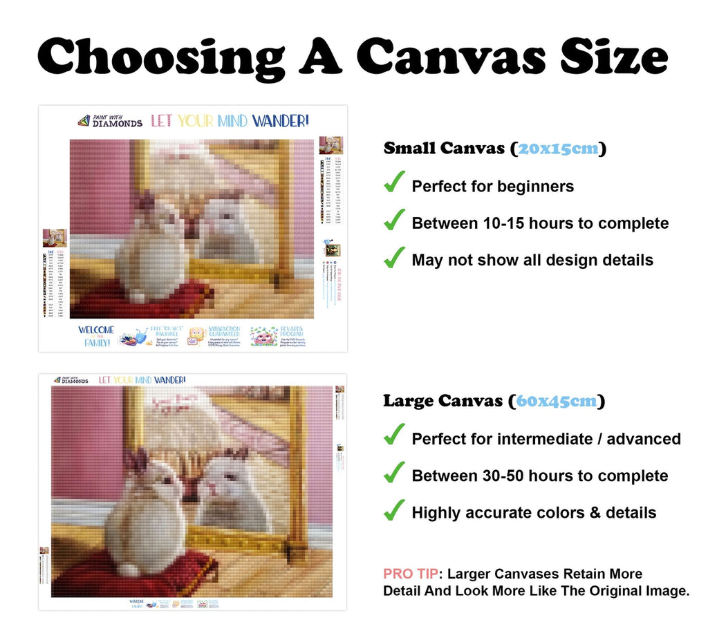 FREE 'OH SH*T' INSURANCE: Sh*t happens. When it does, know that we've got your back! If the cat walks on your canvas, kid turns your diamonds into confetti, whatever happens - we'll replace your canvas or diamonds for FREE.