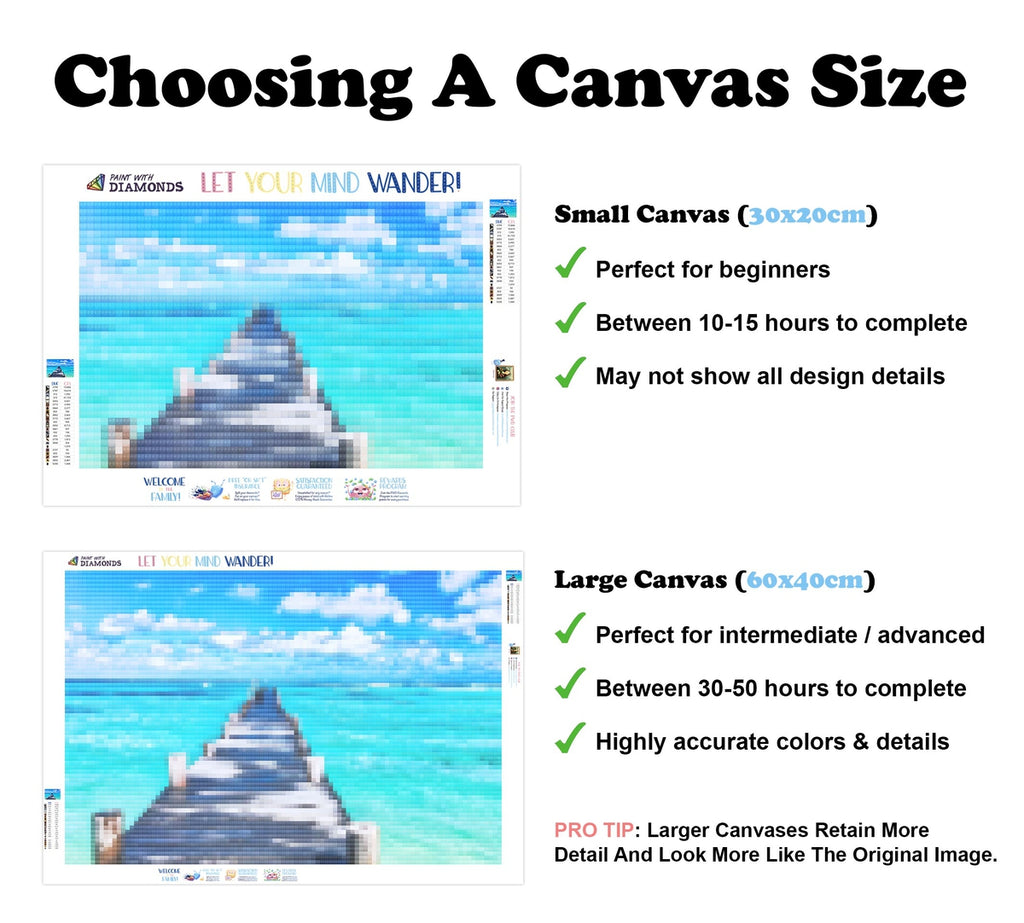 Dog walk on your canvas? Kids turn your diamonds into confetti? We'll replace your kit for free. Never cry over spilled diamonds.