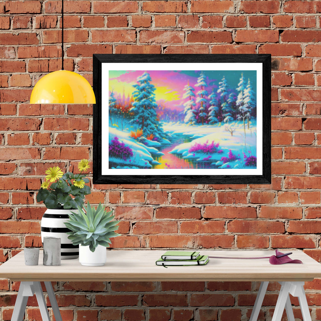 Escape into a world of vibrant colors and creative tranquility with the ‘Cotton Candy Winter Meadow’ Diamond Painting Kit. This exclusive full-drill design by artist Caleb Smith is available only at Paint With Diamonds. Let your mind unwind as you piece together shimmering diamonds to create a beautiful masterpiece.