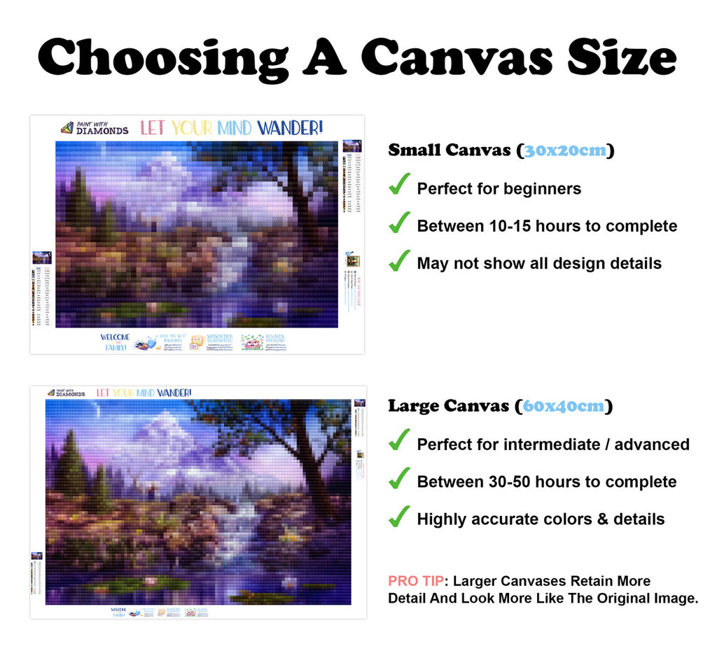 POURED-GLUE CANVAS ADHESIVE: Each kit features a proprietary hand-poured canvas adhesive guaranteed to keep your diamonds locked in for life. Each velvety-soft canvas has a transparent cover so you can see the entire pattern while you work.