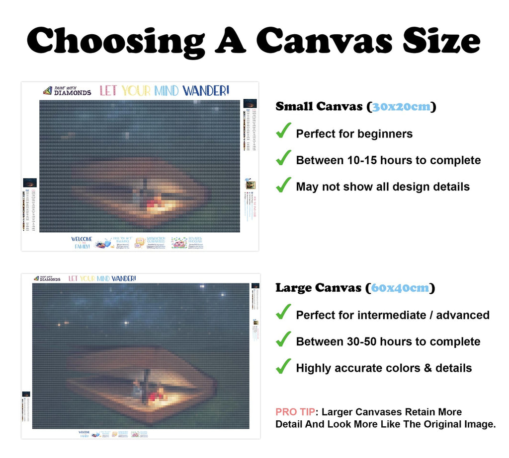Dog walk on your canvas? Kids turn your diamonds into confetti? We'll replace your kit for free. Never cry over spilled diamonds.