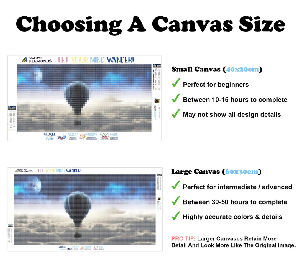 Dog walk on your canvas? Kids turn your diamonds into confetti? We'll replace your kit for free. Never cry over spilled diamonds.