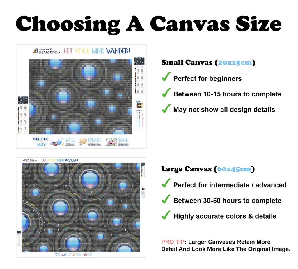 Dog walk on your canvas? Kids turn your diamonds into confetti? We'll replace your kit for free. Never cry over spilled diamonds.
