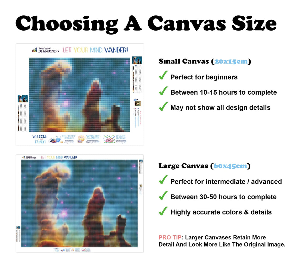 Dog walk on your canvas? Kids turn your diamonds into confetti? We'll replace your kit for free. Never cry over spilled diamonds.