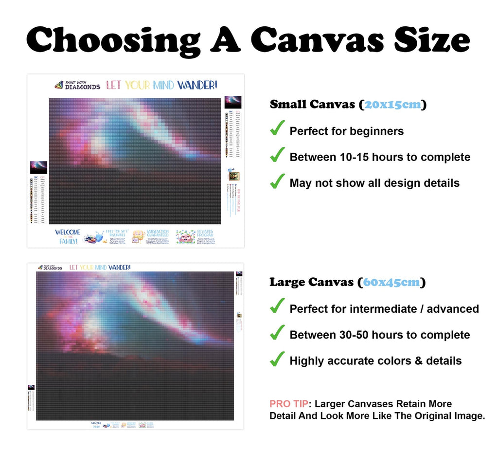 Dog walk on your canvas? Kids turn your diamonds into confetti? We'll replace your kit for free. Never cry over spilled diamonds.