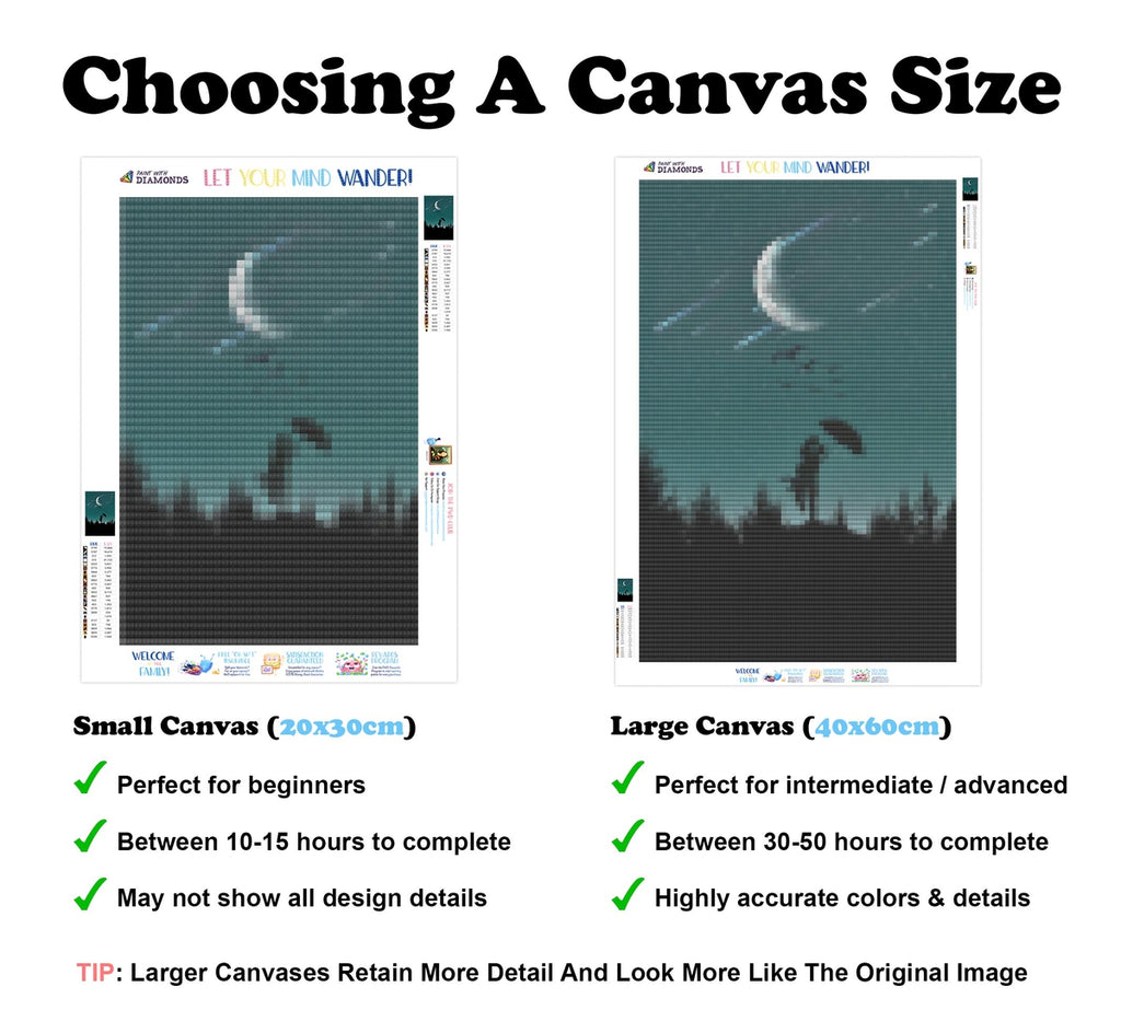 Dog walk on your canvas? Kids turn your diamonds into confetti? We'll replace your kit for free. Never cry over spilled diamonds.
