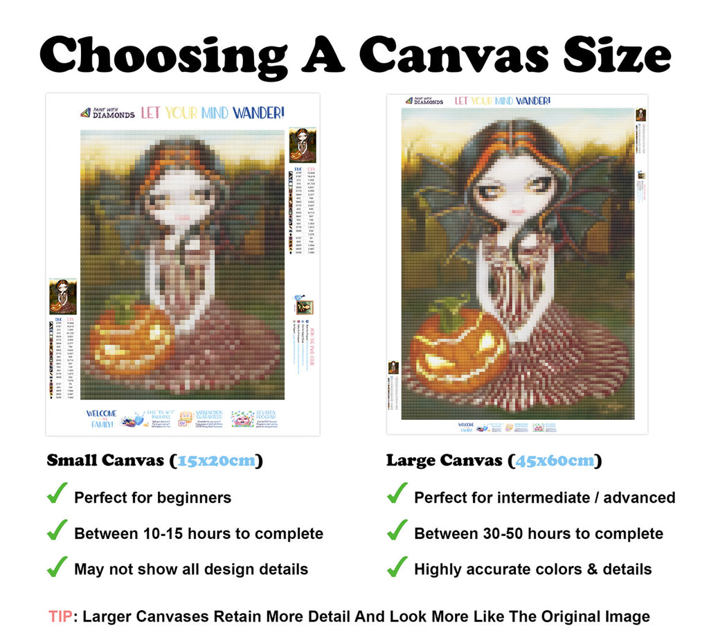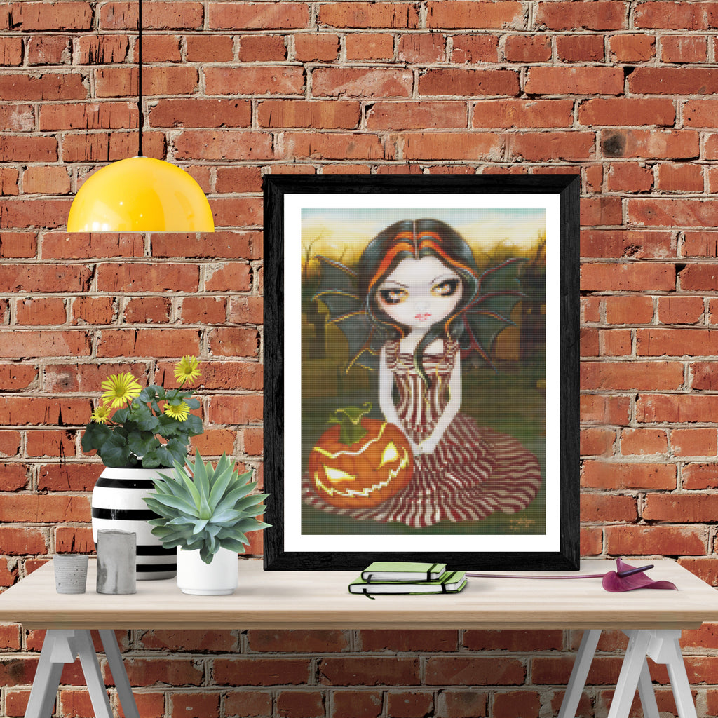 Escape into a world of vibrant colors and creative tranquility with the ‘Halloween Twilight’ Diamond Painting Kit. This exclusive full-drill design by artist Jasmine Becket-Griffith is available only at Paint With Diamonds. Let your mind unwind as you piece together shimmering diamonds to create a beautiful masterpiece.