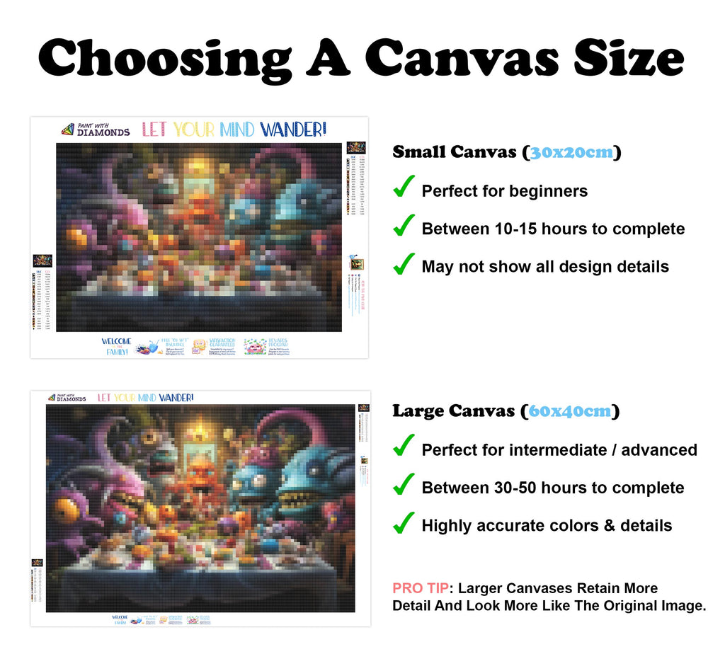 Escape into a world of vibrant colors and creative tranquility with the ‘Monster's Banquet’ Diamond Painting Kit. This exclusive full-drill design by artist Caleb Smith is available only at Paint With Diamonds. Let your mind unwind as you piece together shimmering diamonds to create a beautiful masterpiece.