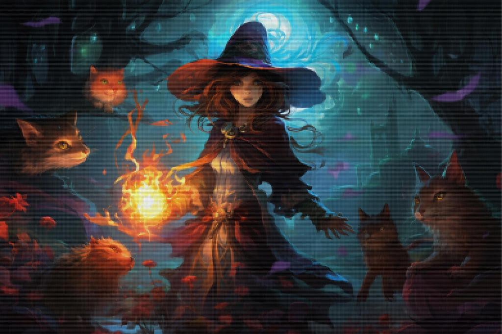 Escape into a world of vibrant colors and creative tranquility with the ‘Witch's Animal Friends’ Diamond Painting Kit. This exclusive full-drill design by artist Caleb Smith is available only at Paint With Diamonds. Let your mind unwind as you piece together shimmering diamonds to create a beautiful masterpiece.