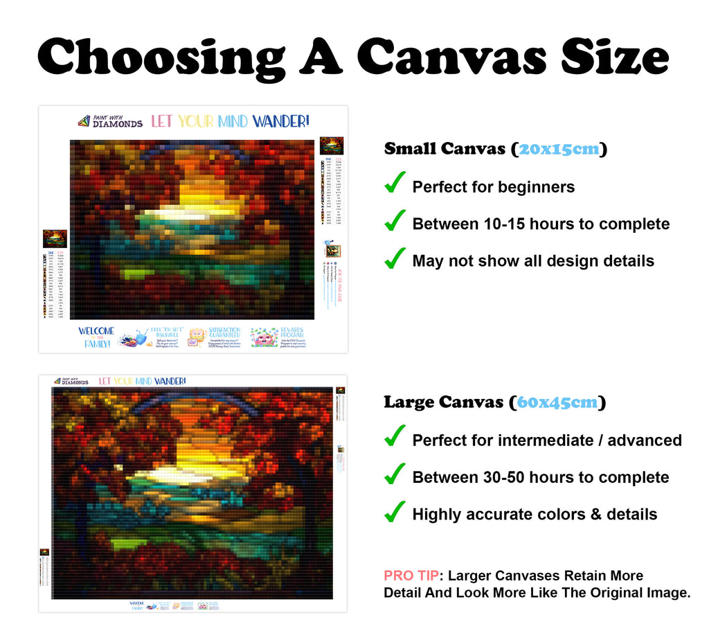 Escape into a world of vibrant colors and creative tranquility with the ‘Autumn Vineyard Harvest’ Diamond Painting Kit. This exclusive full-drill design by artist Caleb Smith is available only at Paint With Diamonds. Let your mind unwind as you piece together shimmering diamonds to create a beautiful masterpiece.