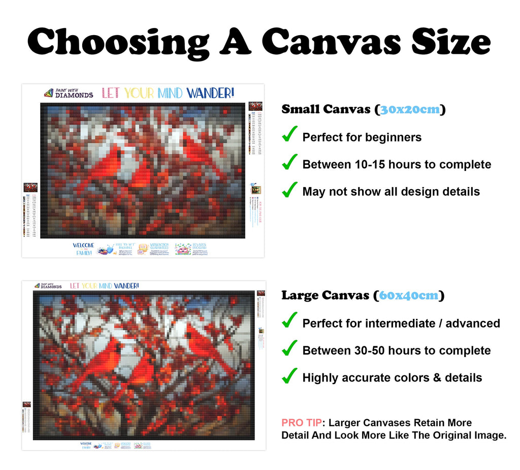 Escape into a world of vibrant colors and creative tranquility with the ‘Cardinals In The Snow’ Diamond Painting Kit. This exclusive full-drill design by artist Caleb Smith is available only at Paint With Diamonds. Let your mind unwind as you piece together shimmering diamonds to create a beautiful masterpiece.