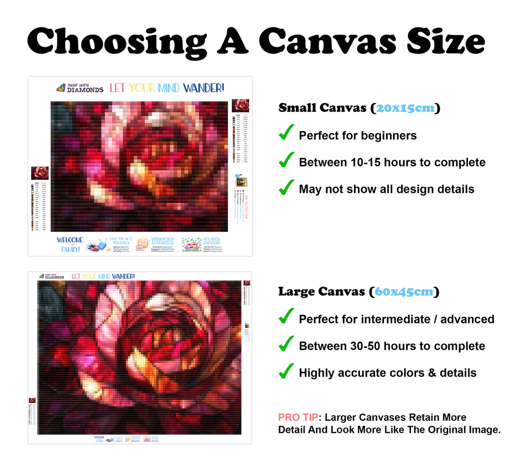 Escape into a world of vibrant colors and creative tranquility with the ‘Close-Up Of A Rose In Full Bloom’ Diamond Painting Kit. This exclusive full-drill design by artist Caleb Smith is available only at Paint With Diamonds. Let your mind unwind as you piece together shimmering diamonds to create a beautiful masterpiece.