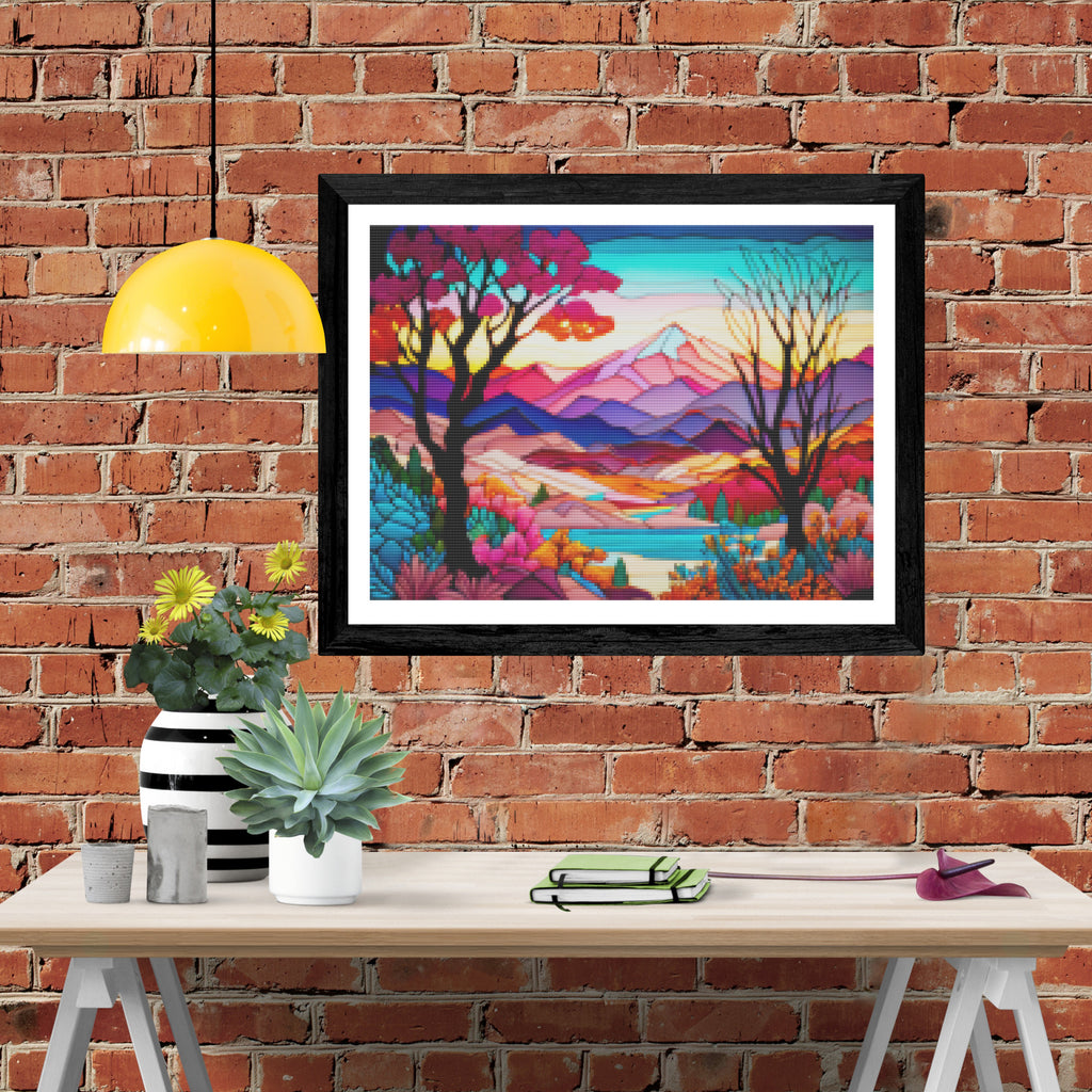 Escape into a world of vibrant colors and creative tranquility with the ‘Colorful Mountain Range Stained Glass’ Diamond Painting Kit. This exclusive full-drill design by artist Caleb Smith is available only at Paint With Diamonds. Let your mind unwind as you piece together shimmering diamonds to create a beautiful masterpiece.