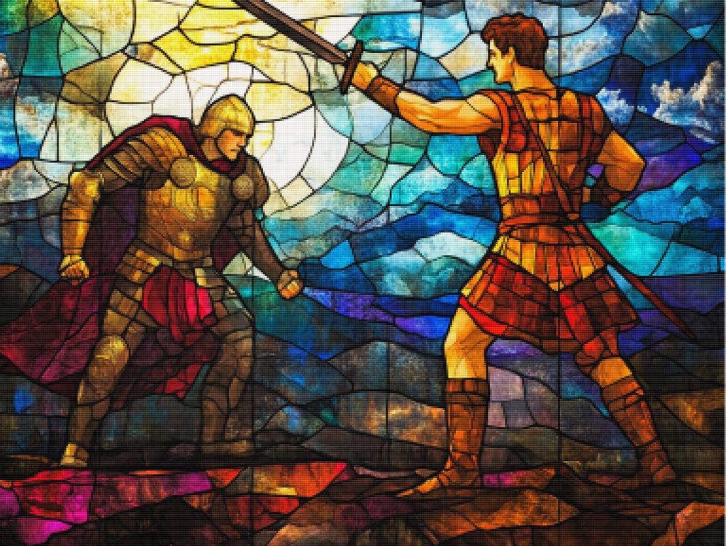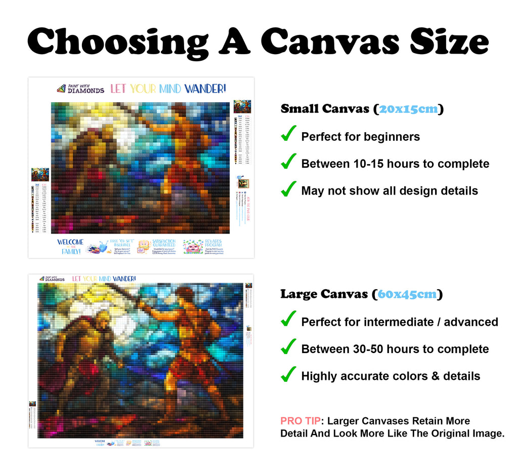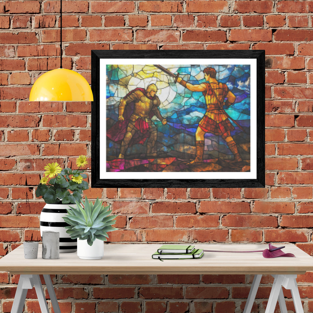 Ready to relax and create something beautiful? Add the 'David and Goliath Stained Glass Diamond Painting Kit to your cart today and start your journey to creative calm.