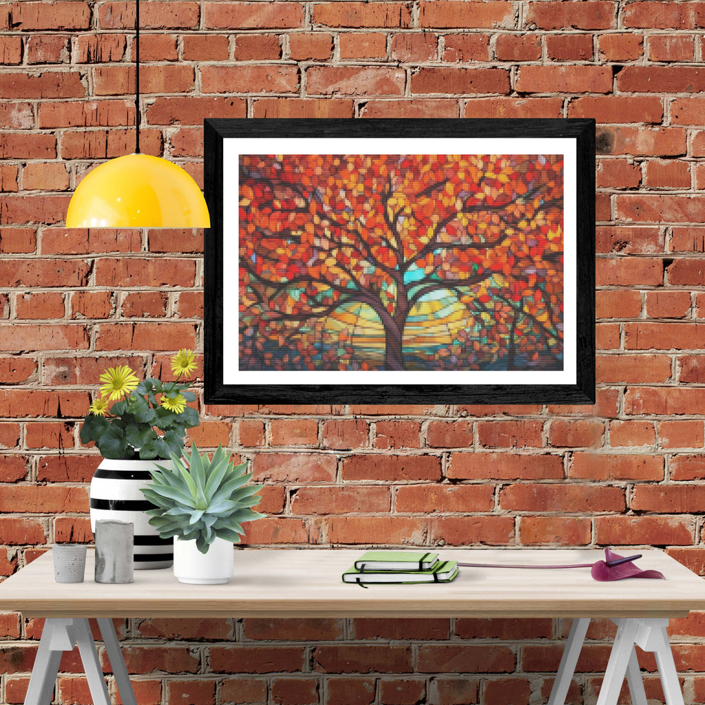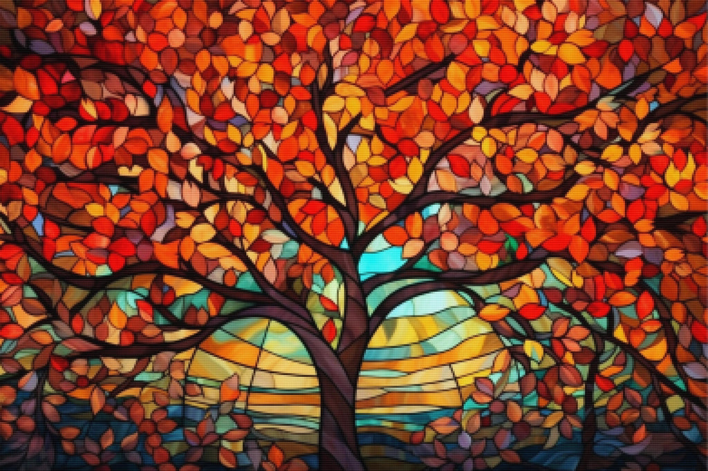 Ready to relax and create something beautiful? Add the 'Fiery Orange Tree Stained Glass Diamond Painting Kit to your cart today and start your journey to creative calm.