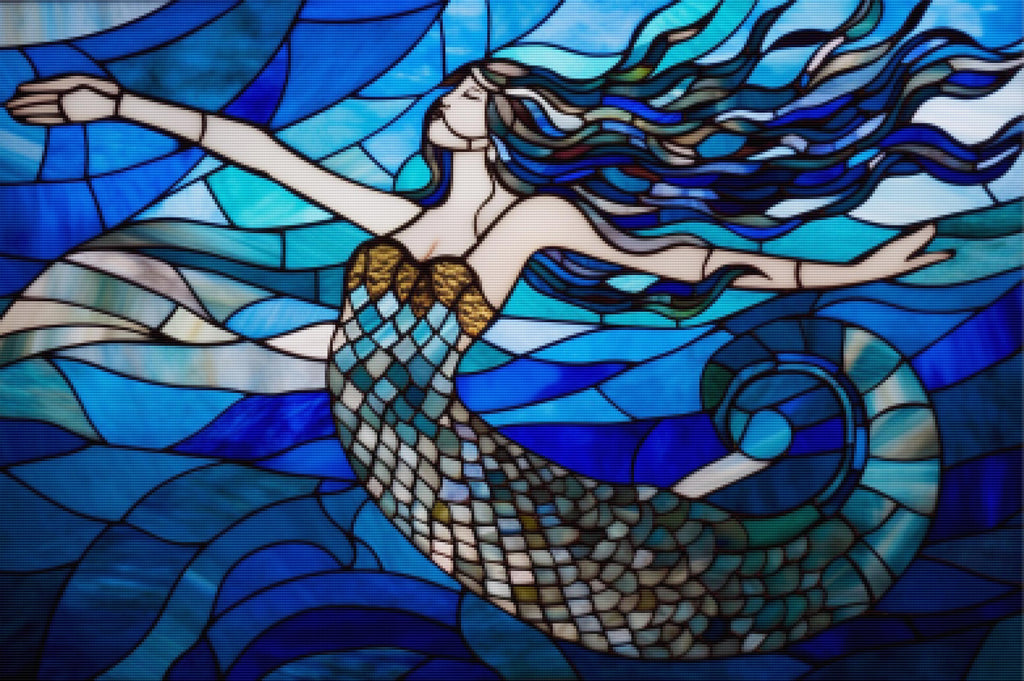 Ready to relax and create something beautiful? Add the 'Flowing Hair Azure Mermaid Stained Glass Diamond Painting Kit to your cart today and start your journey to creative calm.