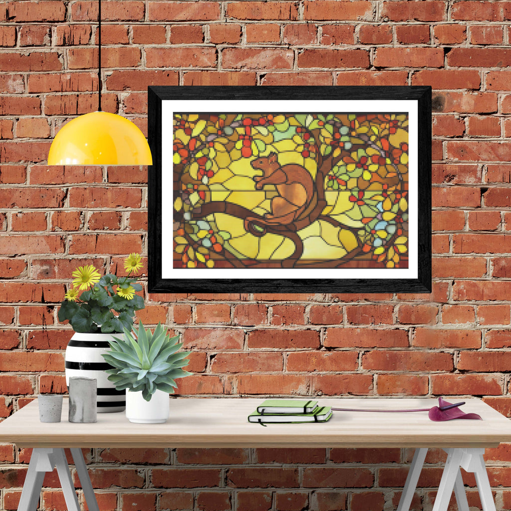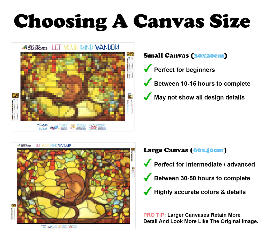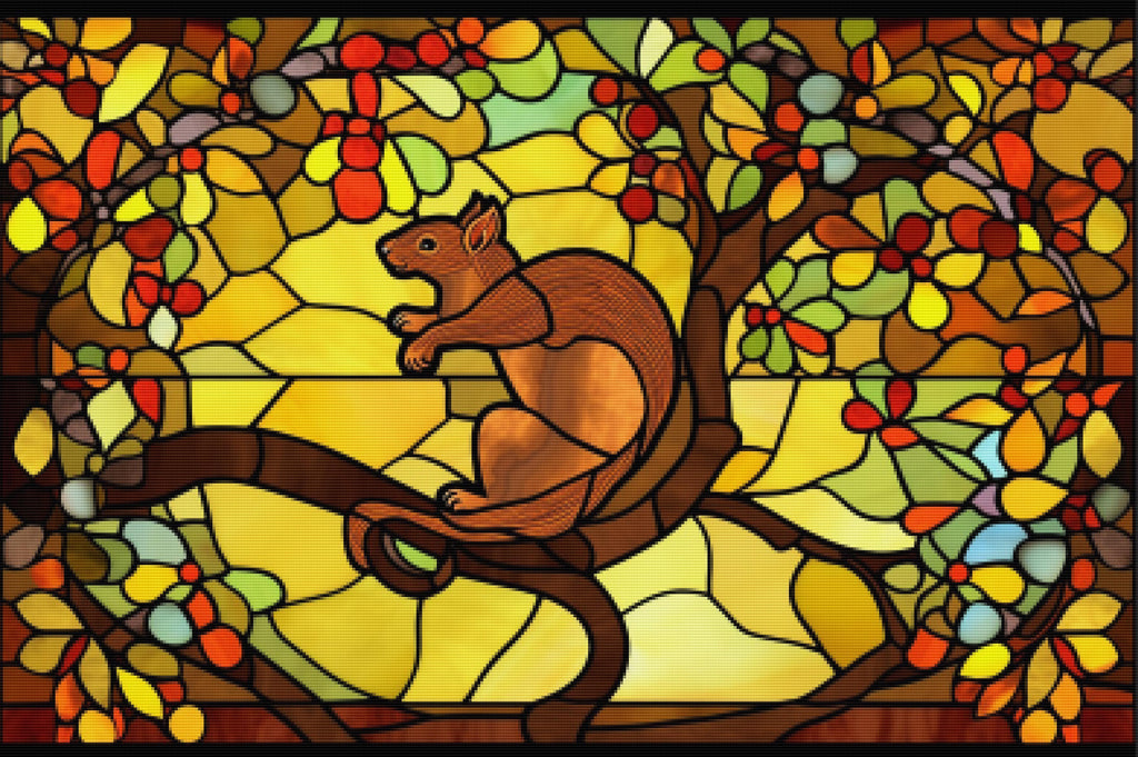 Escape into a world of vibrant colors and creative tranquility with the ‘Gathering Acorns Stained Glass’ Diamond Painting Kit. This exclusive full-drill design by artist Caleb Smith is available only at Paint With Diamonds. Let your mind unwind as you piece together shimmering diamonds to create a beautiful masterpiece.