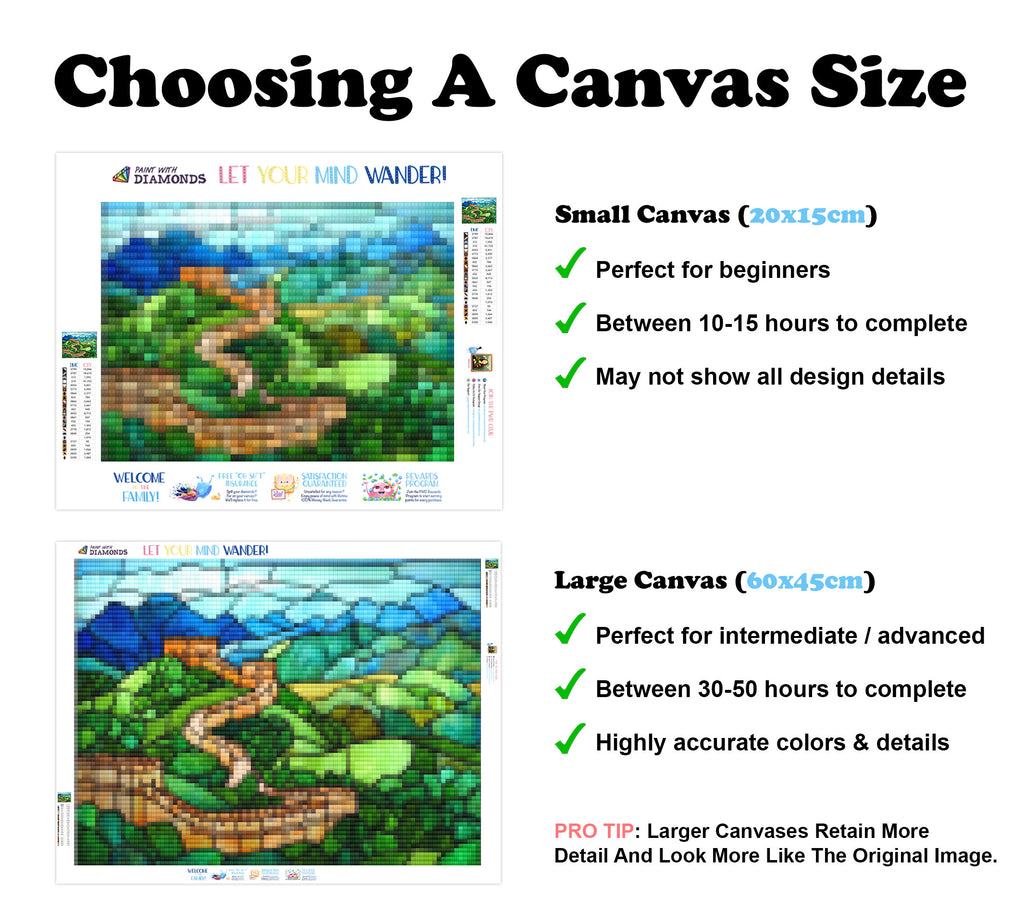 Large canvases show tiny details and all lettering, but may take up to 50+ hours to complete.