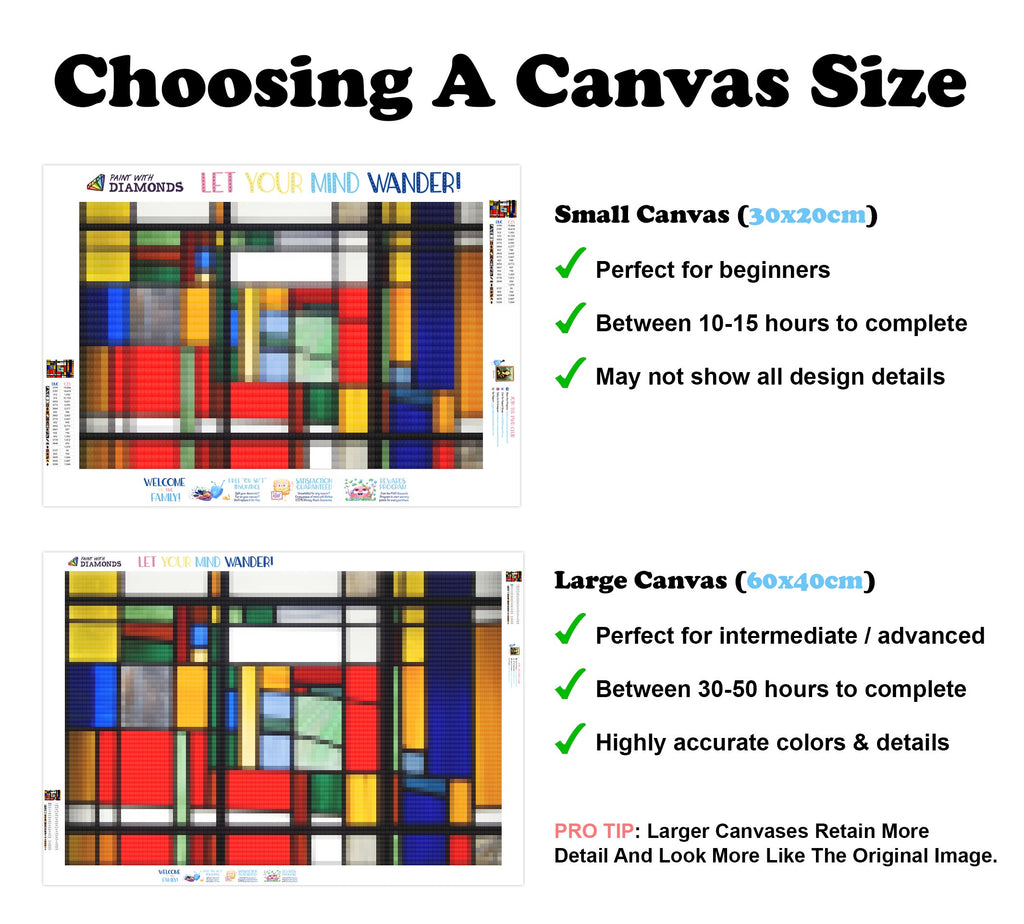Escape into a world of vibrant colors and creative tranquility with the ‘Modernist Design Stained Glass’ Diamond Painting Kit. This exclusive full-drill design by artist Caleb Smith is available only at Paint With Diamonds. Let your mind unwind as you piece together shimmering diamonds to create a beautiful masterpiece.