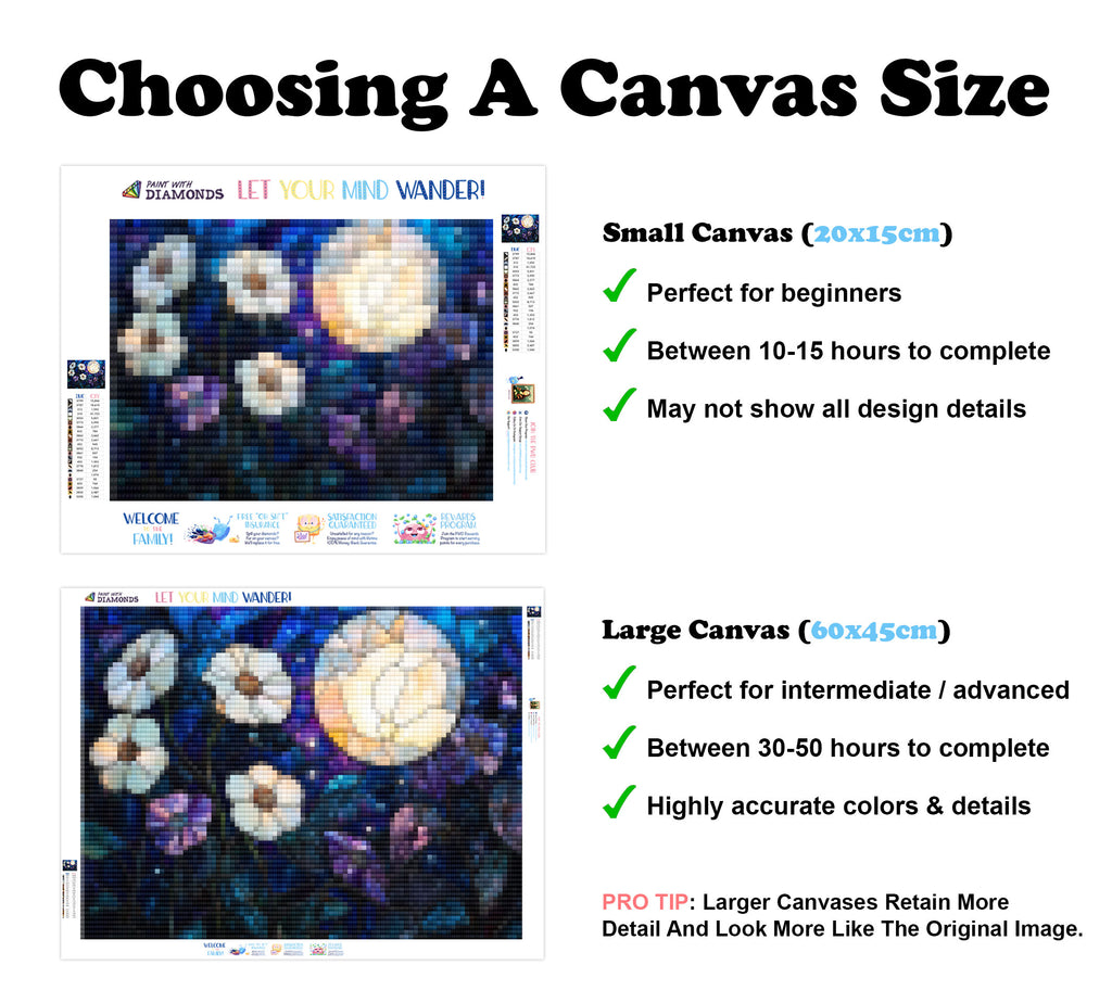 Escape into a world of vibrant colors and creative tranquility with the ‘Moonflowers Blooming Under A Radiant Full Moon’ Diamond Painting Kit. This exclusive full-drill design by artist Caleb Smith is available only at Paint With Diamonds. Let your mind unwind as you piece together shimmering diamonds to create a beautiful masterpiece.