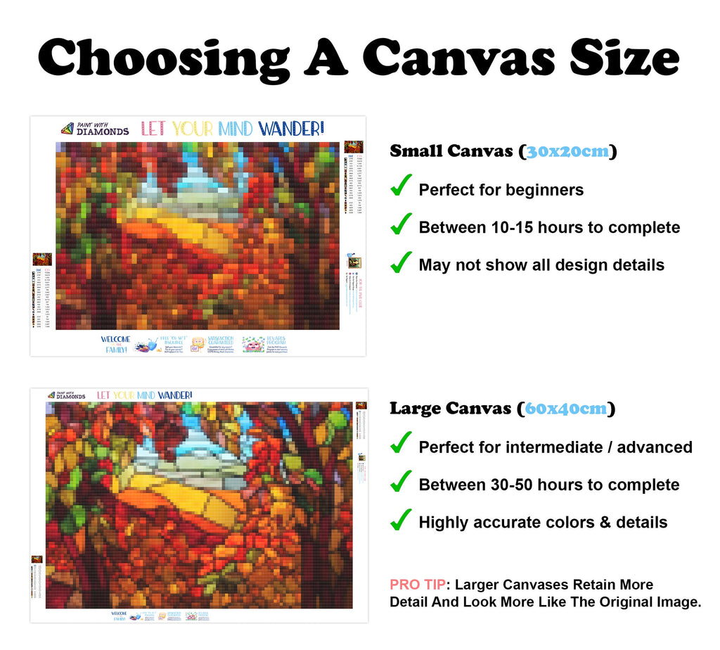 Premium Quality Diamond Painting Kit: Includes a velvety-soft adhesive canvas, eco-friendly shimmering resin diamonds, and a premium toolkit - everything you ned to get started on your next masterpiece.