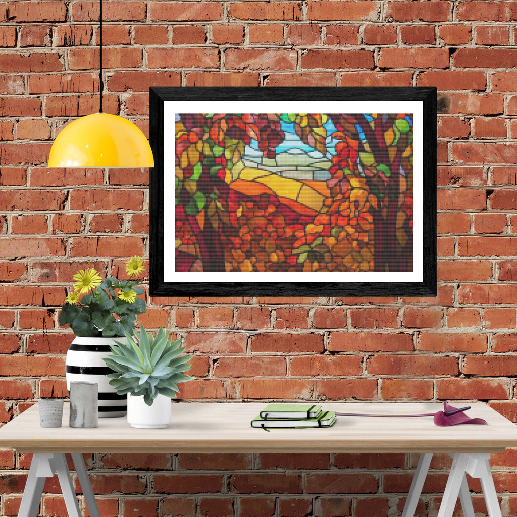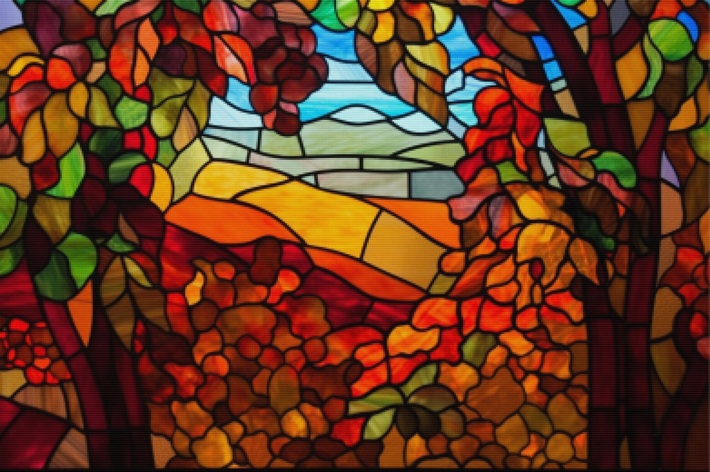 Escape into a world of vibrant colors and creative tranquility with the ‘Orange Sunset Vineyard Stained Glass’ Diamond Painting Kit. This exclusive full-drill design by artist Caleb Smith is available only at Paint With Diamonds. Let your mind unwind as you piece together shimmering diamonds to create a beautiful masterpiece.