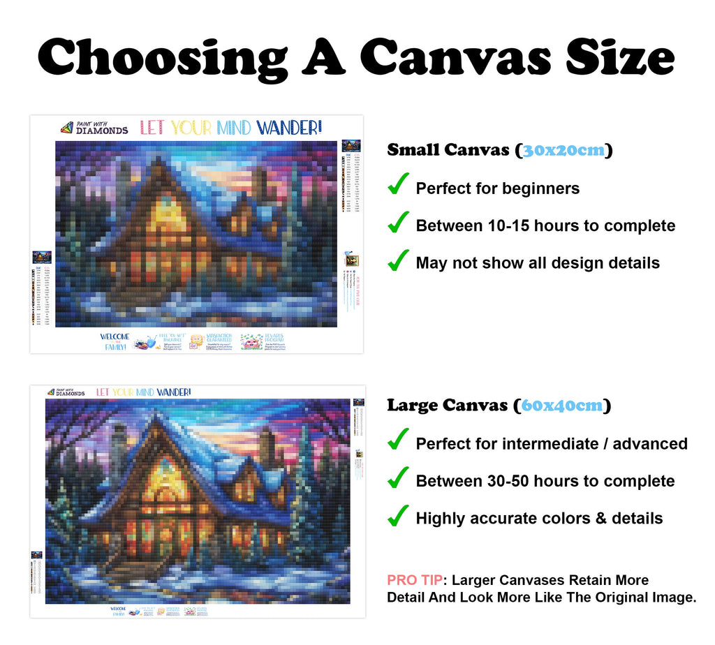 Large canvases show tiny details and all lettering, but may take up to 50+ hours to complete.