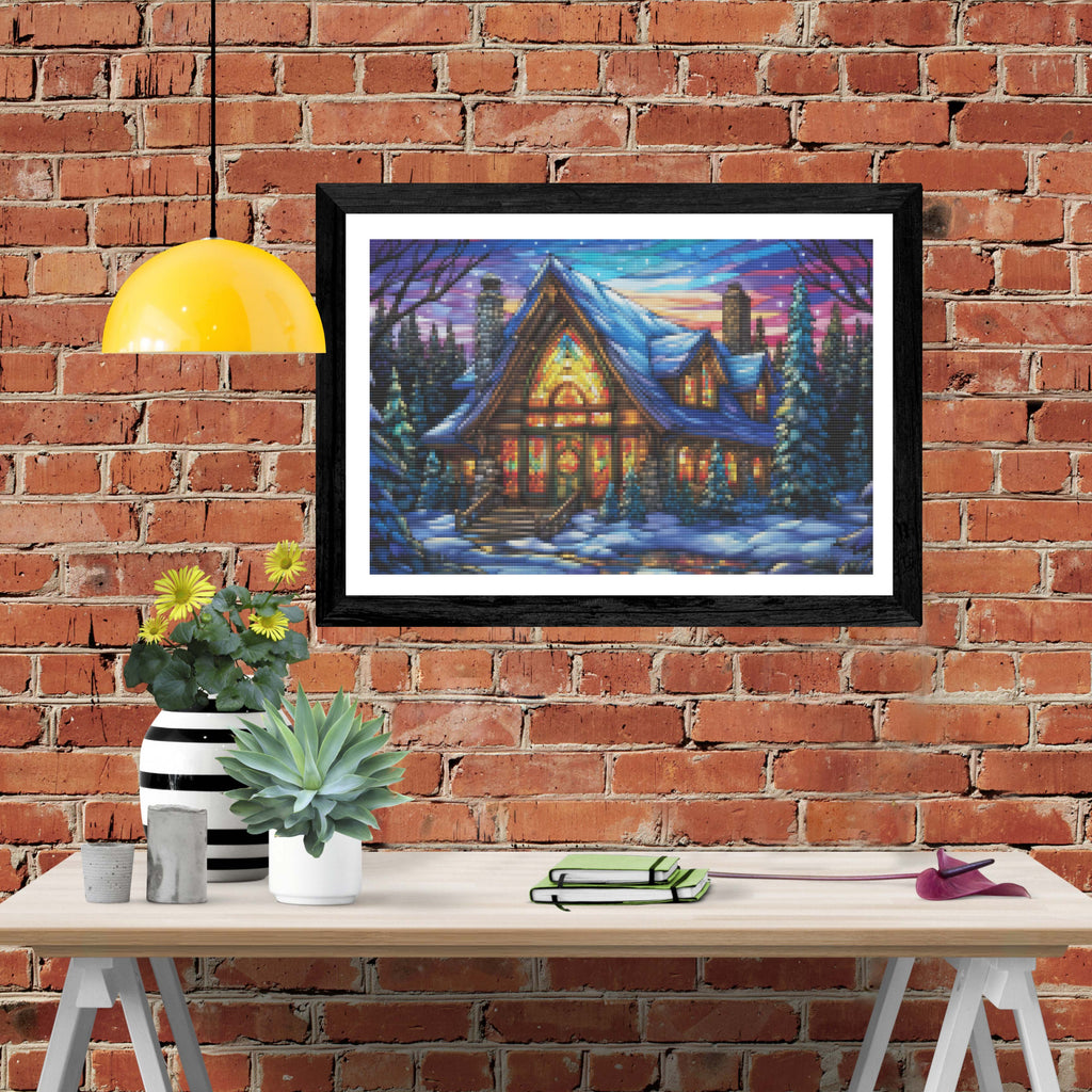 Ready to relax and create something beautiful? Add the 'Ornate Winter Cabin Stained Glass Diamond Painting Kit to your cart today and start your journey to creative calm.