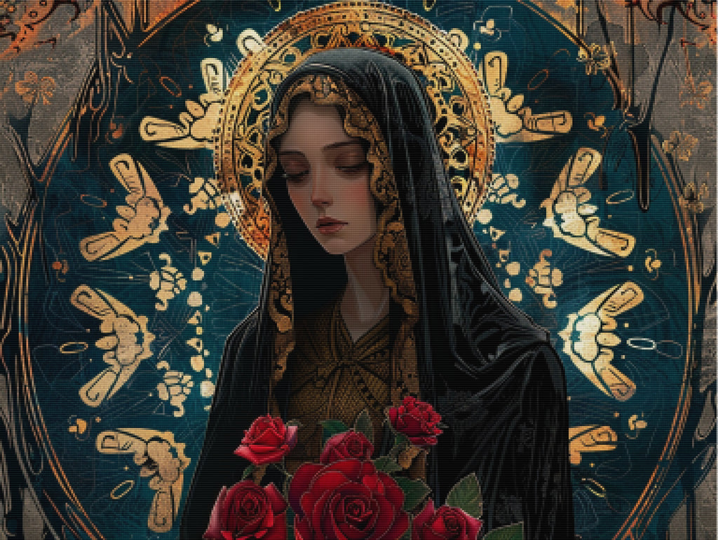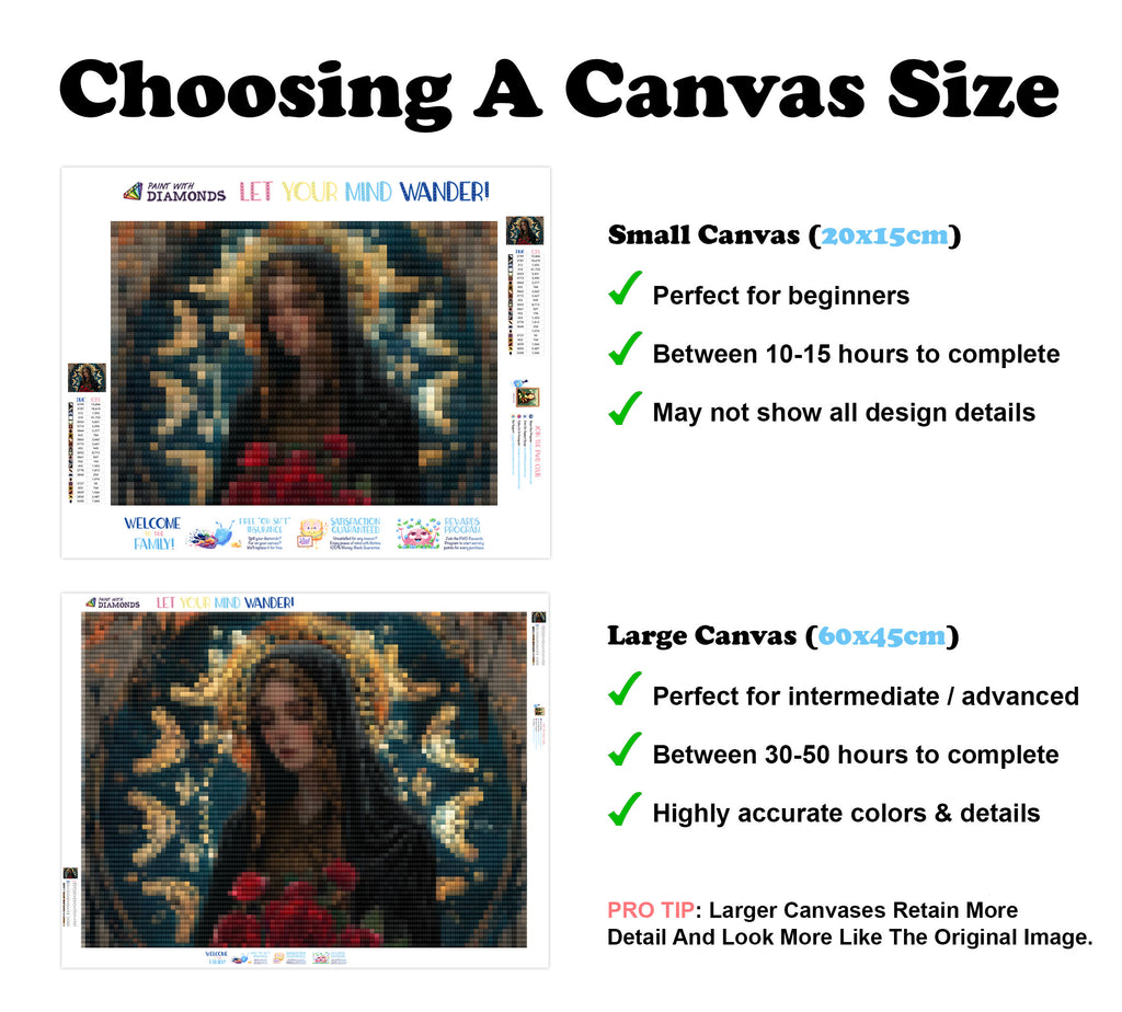 Escape into a world of vibrant colors and creative tranquility with the ‘Our Lady of Sorrows’ Diamond Painting Kit. This exclusive full-drill design by artist Caleb Smith is available only at Paint With Diamonds. Let your mind unwind as you piece together shimmering diamonds to create a beautiful masterpiece.