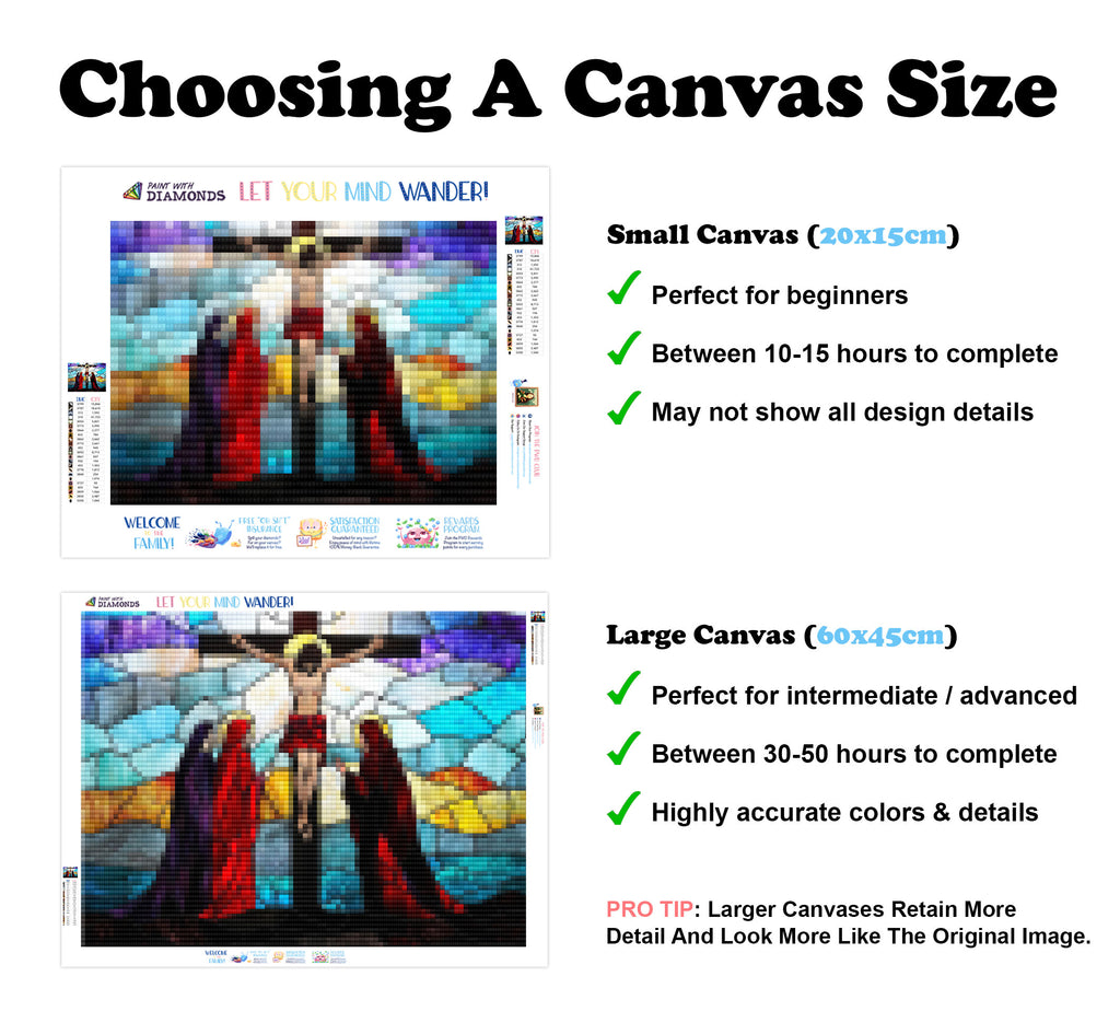 Large canvases show tiny details and all lettering, but may take up to 50+ hours to complete.
