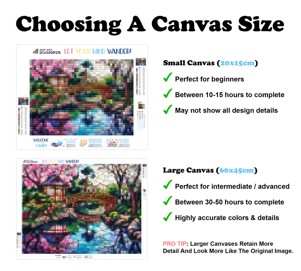 Large canvases show tiny details and all lettering, but may take up to 50+ hours to complete.
