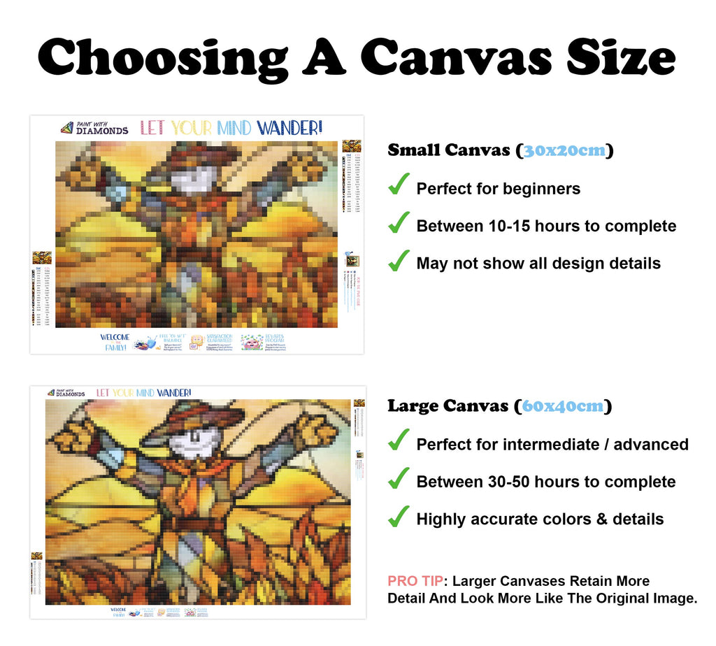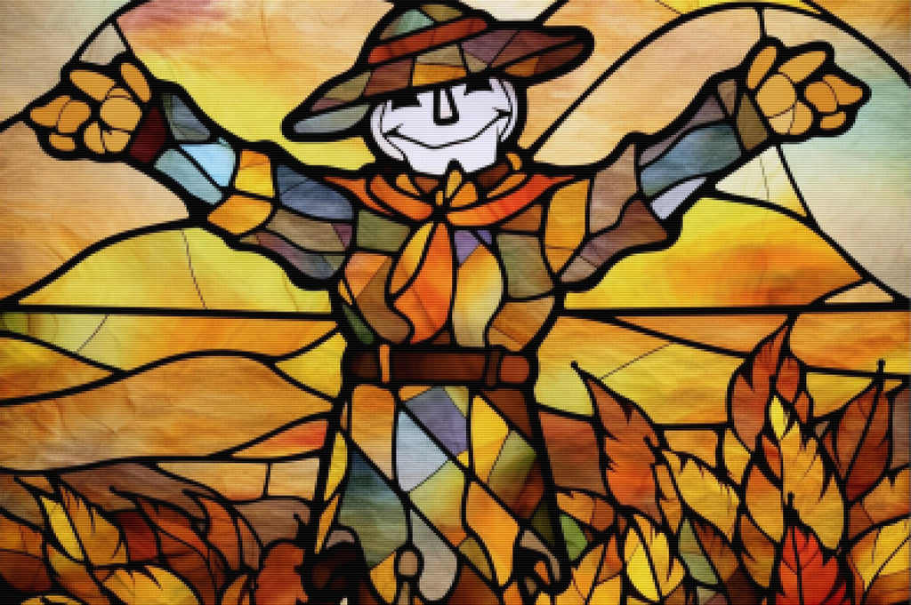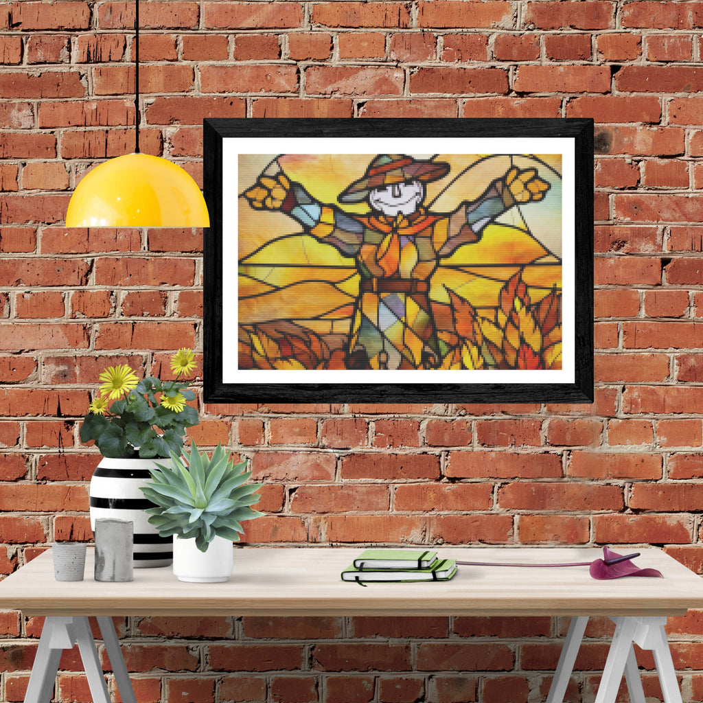 Ready to relax and create something beautiful? Add the 'Scarecrow In Field Stained Glass Diamond Painting Kit to your cart today and start your journey to creative calm.