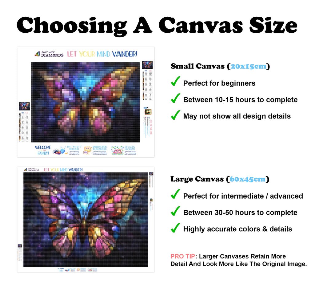 Escape into a world of vibrant colors and creative tranquility with the ‘Surreal Cosmic Butterfly’ Diamond Painting Kit. This exclusive full-drill design by artist Caleb Smith is available only at Paint With Diamonds. Let your mind unwind as you piece together shimmering diamonds to create a beautiful masterpiece.