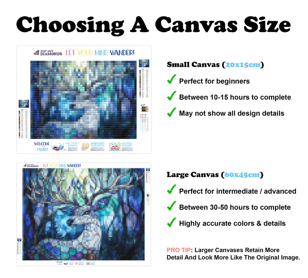 Premium Quality Diamond Painting Kit: Includes a velvety-soft adhesive canvas, eco-friendly shimmering resin diamonds, and a premium toolkit - everything you ned to get started on your next masterpiece.