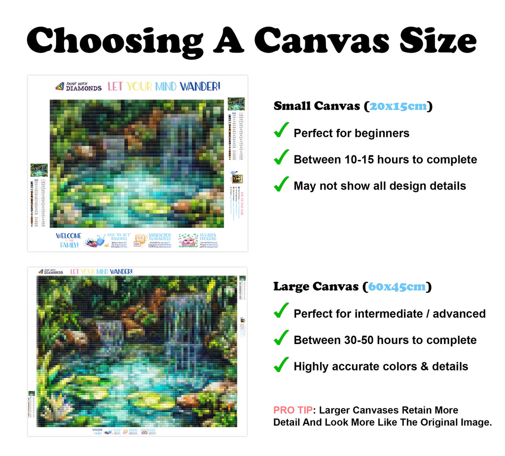 Large canvases show tiny details and all lettering, but may take up to 50+ hours to complete.