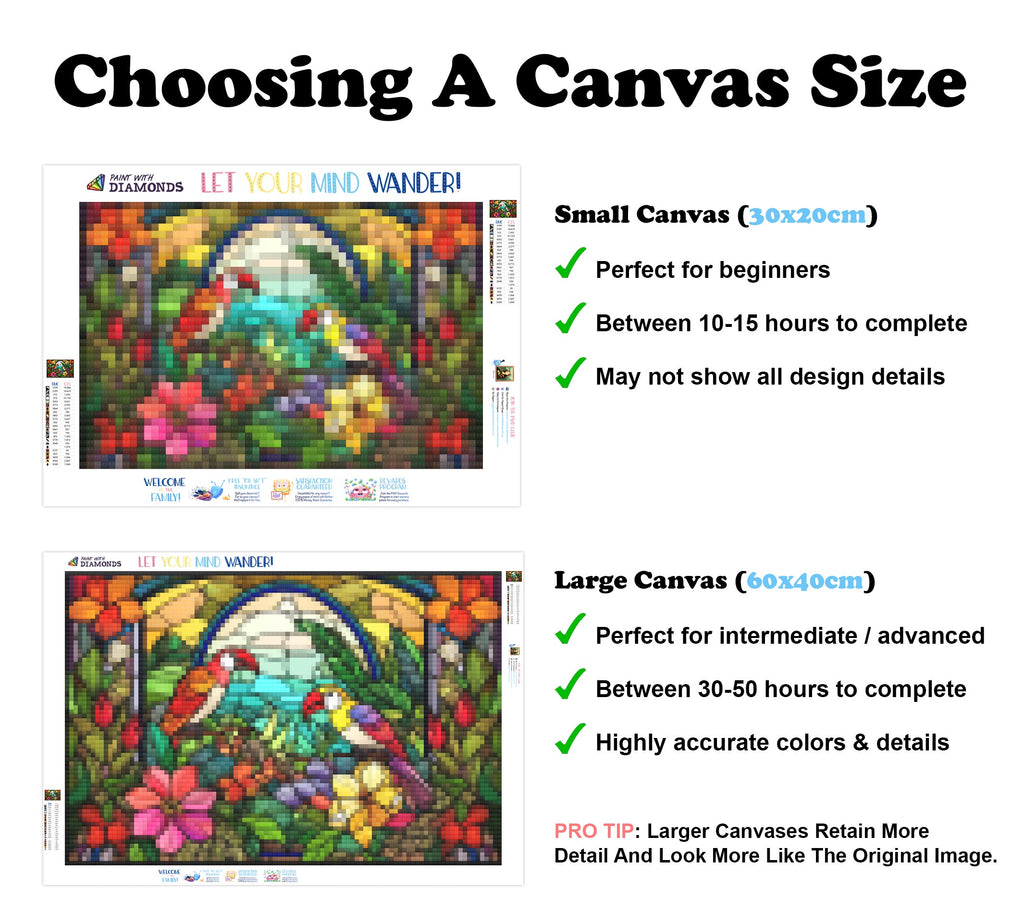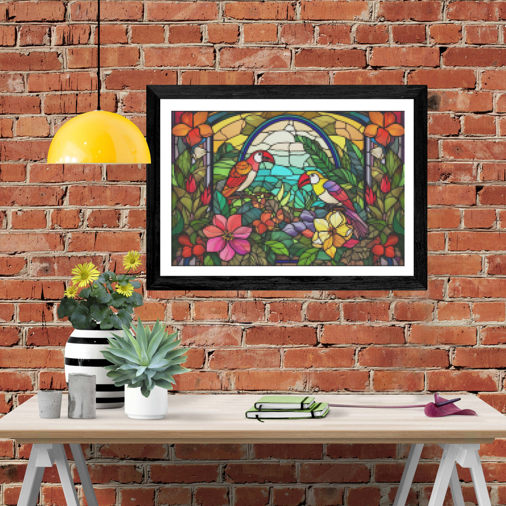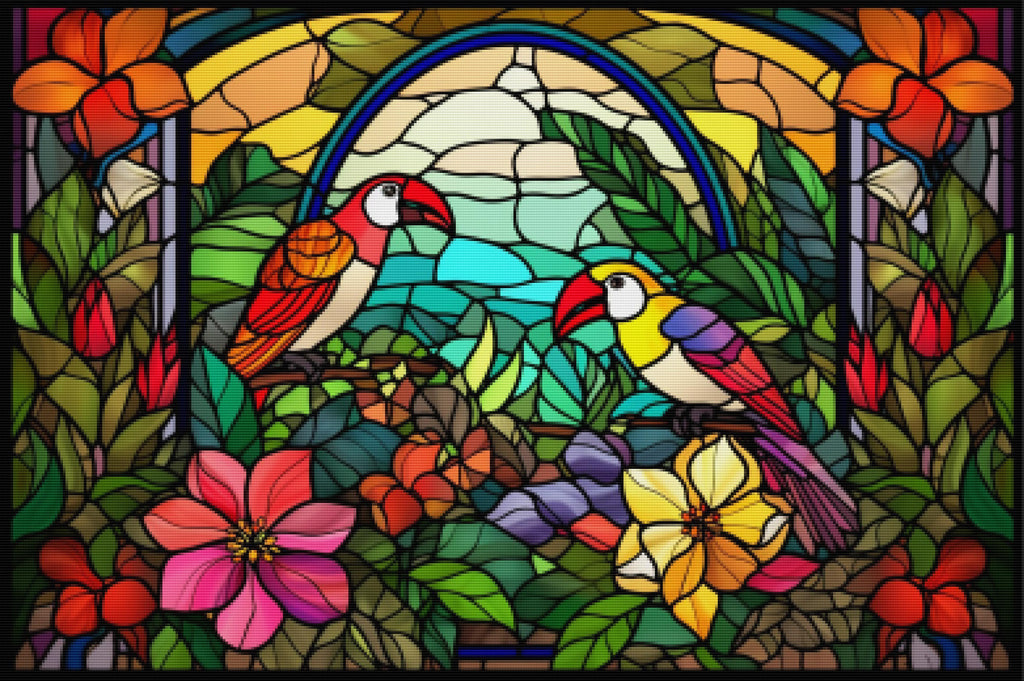 Ready to relax and create something beautiful? Add the 'Tropical Island Colorful Birds Stained Glass Diamond Painting Kit to your cart today and start your journey to creative calm.