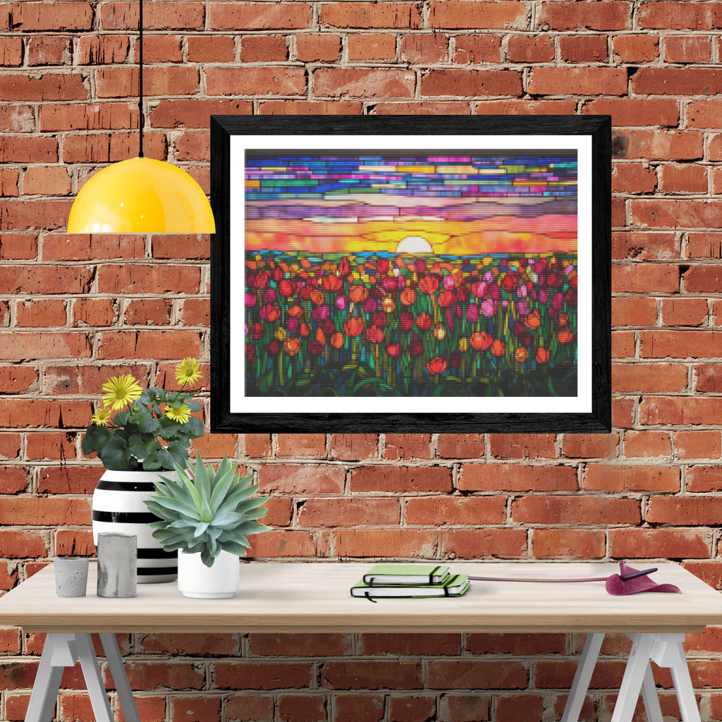 Escape into a world of vibrant colors and creative tranquility with the ‘Tulip Fields at Sunset’ Diamond Painting Kit. This exclusive full-drill design by artist Caleb Smith is available only at Paint With Diamonds. Let your mind unwind as you piece together shimmering diamonds to create a beautiful masterpiece.
