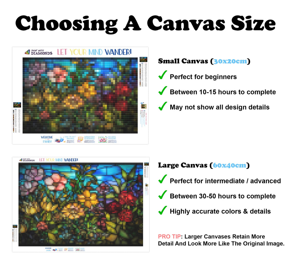 Escape into a world of vibrant colors and creative tranquility with the ‘Vibrant Garden Stained Glass’ Diamond Painting Kit. This exclusive full-drill design by artist Caleb Smith is available only at Paint With Diamonds. Let your mind unwind as you piece together shimmering diamonds to create a beautiful masterpiece.