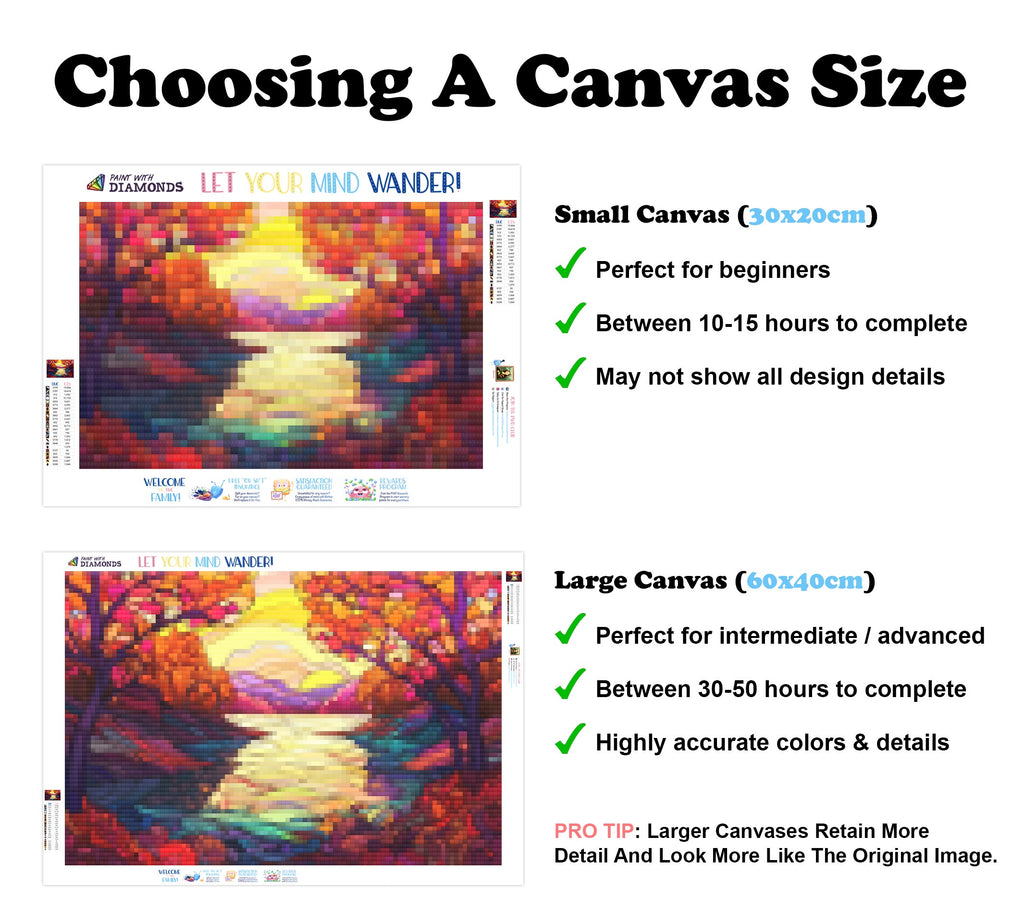 Premium Quality Diamond Painting Kit: Includes a velvety-soft adhesive canvas, eco-friendly shimmering resin diamonds, and a premium toolkit - everything you ned to get started on your next masterpiece.