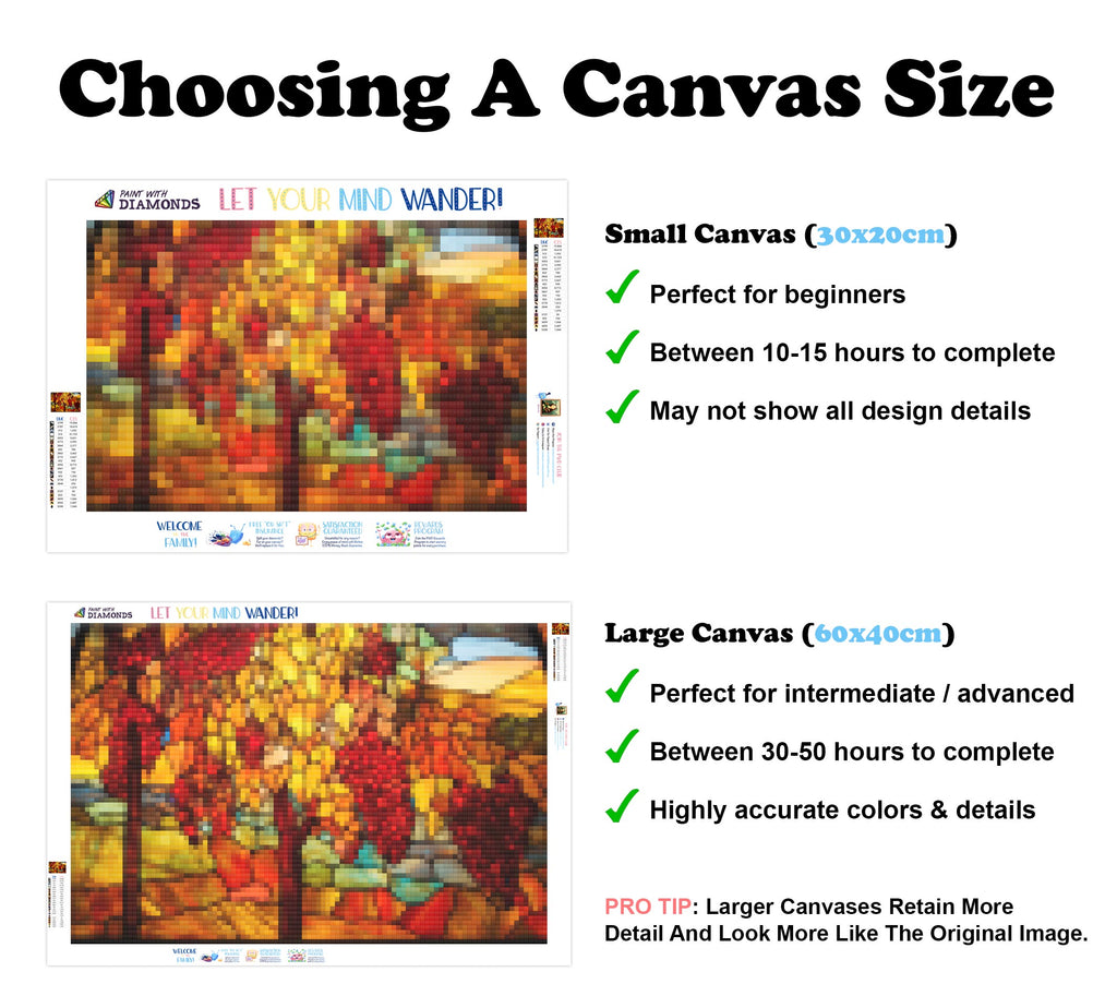 Premium Quality Diamond Painting Kit: Includes a velvety-soft adhesive canvas, eco-friendly shimmering resin diamonds, and a premium toolkit - everything you ned to get started on your next masterpiece.