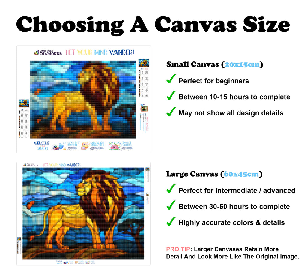 Escape into a world of vibrant colors and creative tranquility with the ‘Majestic Stained Glass Lion’ Diamond Painting Kit. This exclusive full-drill design by artist Caleb Smith is available only at Paint With Diamonds. Let your mind unwind as you piece together shimmering diamonds to create a beautiful masterpiece.