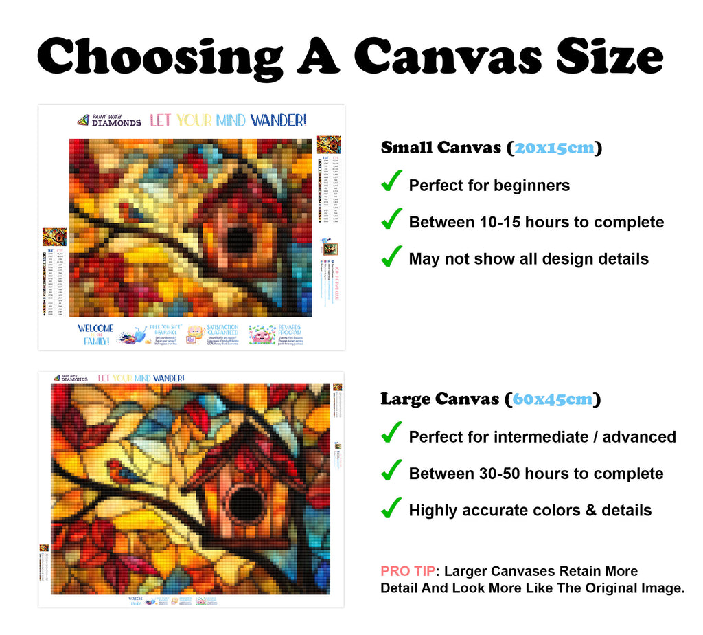 Escape into a world of vibrant colors and creative tranquility with the ‘Autumn Birdhouse’ Diamond Painting Kit. This exclusive full-drill design by artist Caleb Smith is available only at Paint With Diamonds. Let your mind unwind as you piece together shimmering diamonds to create a beautiful masterpiece.